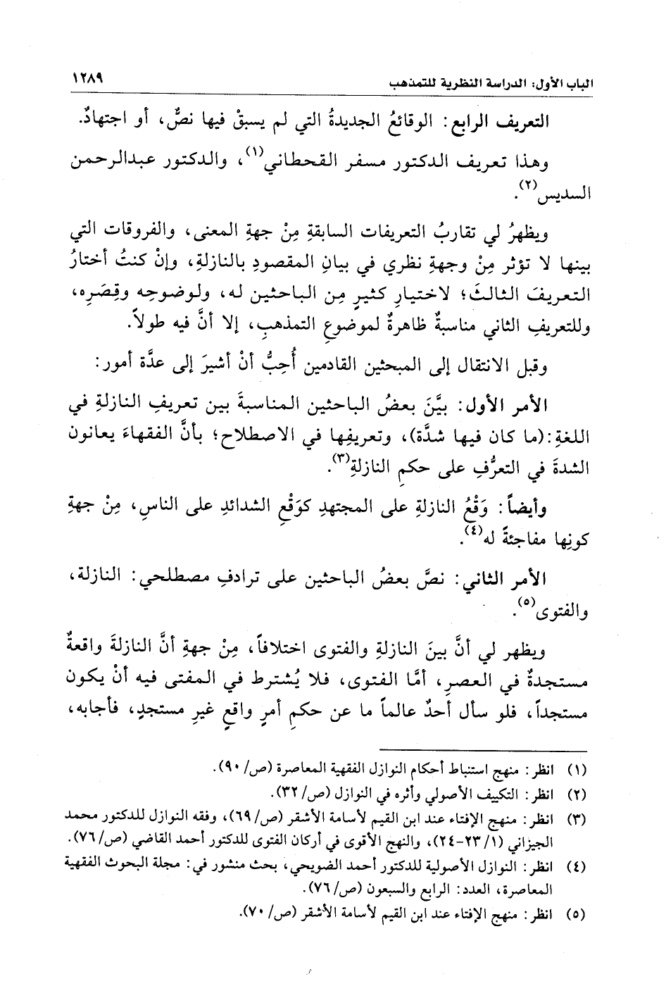 (¬٤) انظر: النوازل الأصولية للدكتور أحمد الضويحي، بحث منشور في: مجلة البحوث الفقهية المعاصرة، العدد: الرابع والسبعون (ص/ ٧٦).