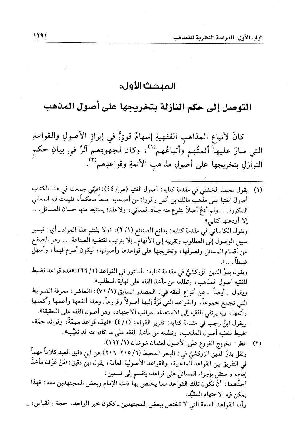 المبحث الأول: التوصل إِلى حكم النازلة بتخريجها على أصول المذهب