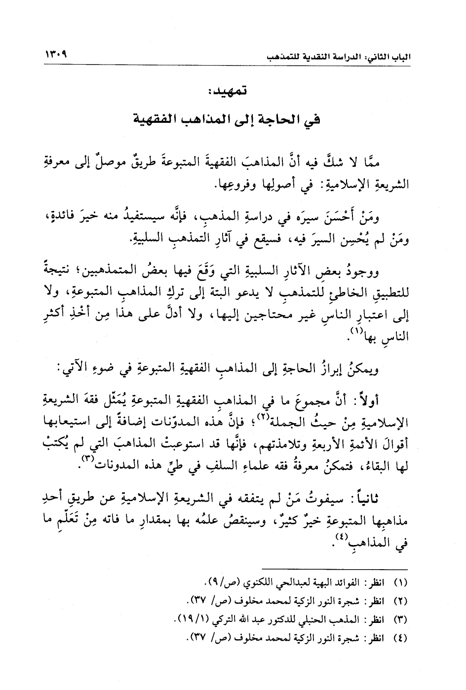 ممَّا لا شكَّ فيه أنَّ المذاهبَ الفقهيةَ المتبوعةَ طريقٌ موصلٌ إِلى معرفةِ الشريعةِ الإِسلاميةِ: في أصولِها وفروعِها.