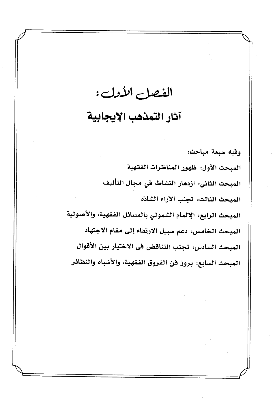 الفصل الأول آثار التمذهب الإيجابية