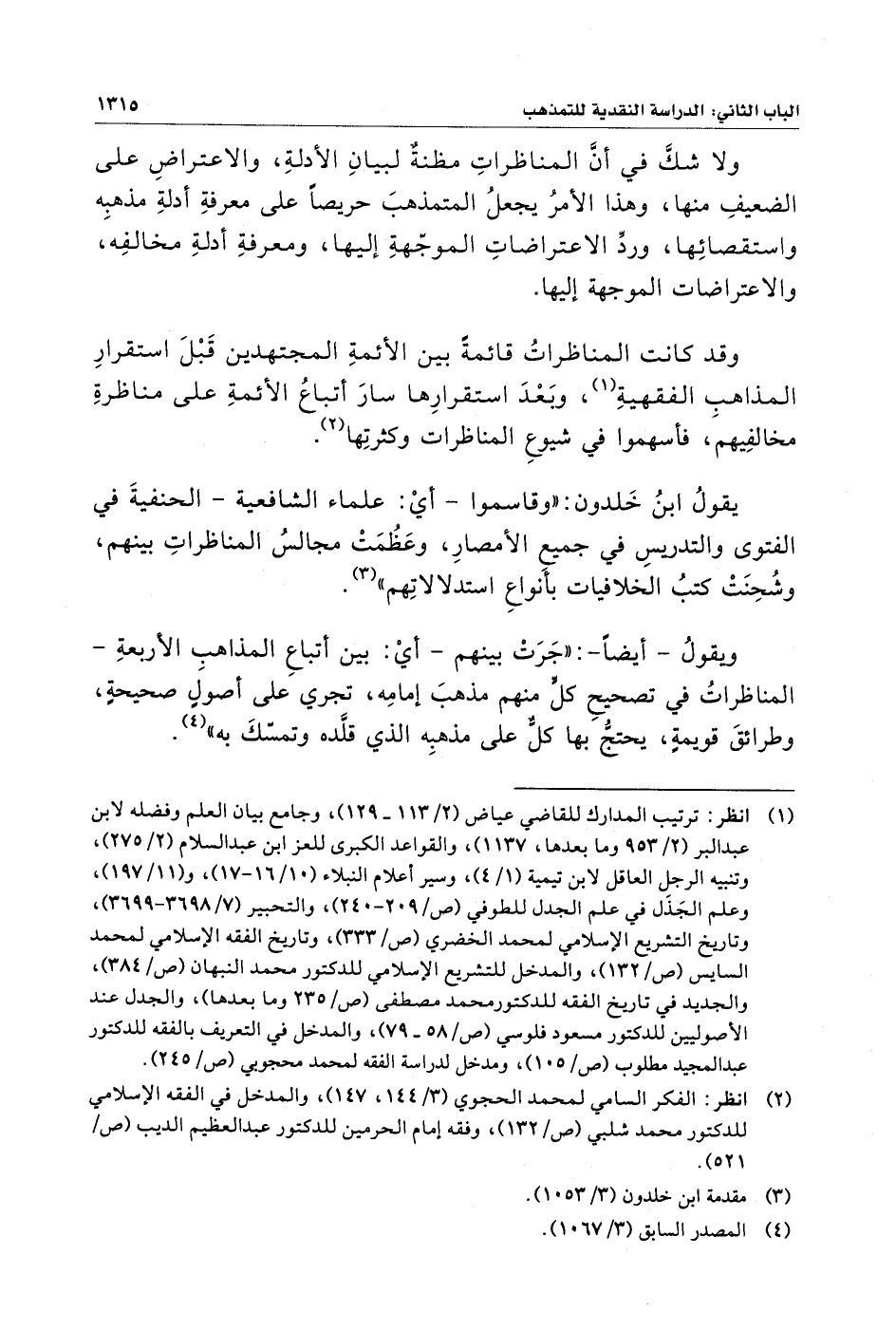 (¬١) انظر: ترتيب المدارك للقاضي عياض (٢/ ١١٣ - ١٢٩)، وجامع بيان العلم وفضله لابن عبد البر (٢/ ٩٥٣ وما بعدها، ١١٣٧)، والقواعد الكبرى للعز بن عبد السلام (٢/ ٢٧٥)، وتنبيه الرجل العاقل لابن تيمية (١/ ٤)، وسير أعلام النُّبَلاء (١٠/ ١٦ - ١٧)، و (١١/ ١٩٧)، وعلم الجَذَل في علم الجدل للطوفي (ص ٢٠٩/ - ٢٤٠)، والتحبير (٧/ ٣٦٩٨ - ٣٦٩٩)، وتاريخ التشريع الإِسلامي لمحمد الخضري (ص/ ٣٣٣)، وتاريخ الفقه الإِسلامي لمحمد السايس (ص/ ١٣٢)، والمدخل للتشريع الإِسلامي للدكتور محمد النبهان (ص/ ٣٨٤)، والجديد في تاريخ الفقه للدكتورمحمد مصطفى (ص/ ٢٣٥ وما بعدها)، والجدل عند الأصوليين للدكتور مسعود فلوسي (ص/ ٥٨ - ٧٩)، والمدخل في التعريف بالفقه للدكتور عبد المجيد مطلوب (ص/ ١٠٥)، ومدخل لدراسة الفقه لمحمد محجوبي (ص/ ٢٤٥).