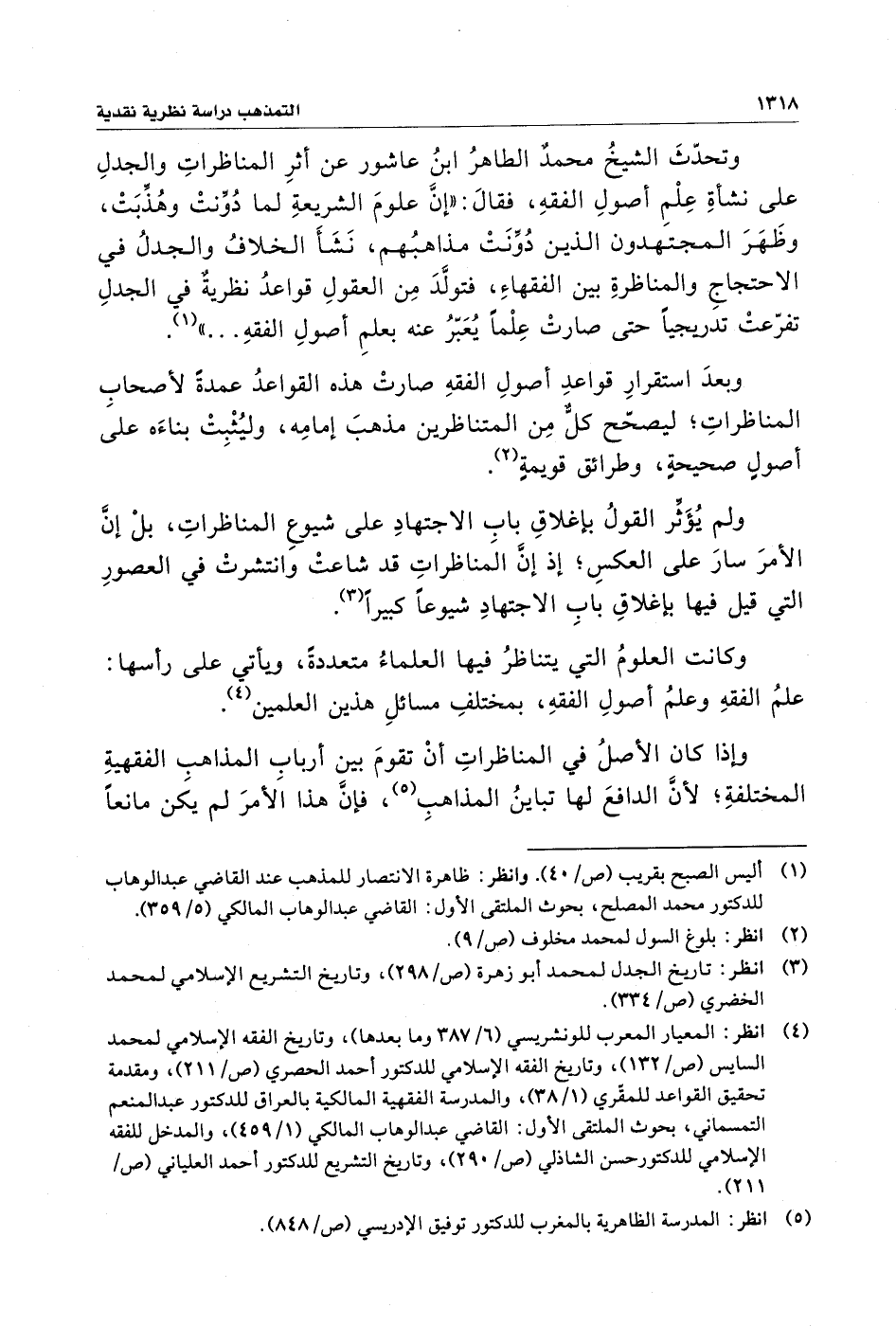 وتحدّثَ الشيخُ محمدٌ الطاهرُ بنُ عاشور عن أثرِ المناظراتِ والجدلِ على نشأةِ عِلْمِ أصولِ الفقهِ، فقالَ: "إِن علومَ الشريعةِ لما دُوِّنتْ وهُذِّبَتْ، وظَهَرَ المجتهدون الذين دُوِّنَتْ مذاهبُهم، نَشَأَ الخلافُ والجدلُ في الاحتجاجِ والمناظرةِ بين الفقهاءِ، فتولَّدَ مِن العقولِ قواعدُ نظريةٌ في الجدلِ تفرّعت تدريجيًا حتى صارتْ عِلْمًا يُعَبّرُ عنه بعلمِ أصولِ الفقهِ ... " (¬١).