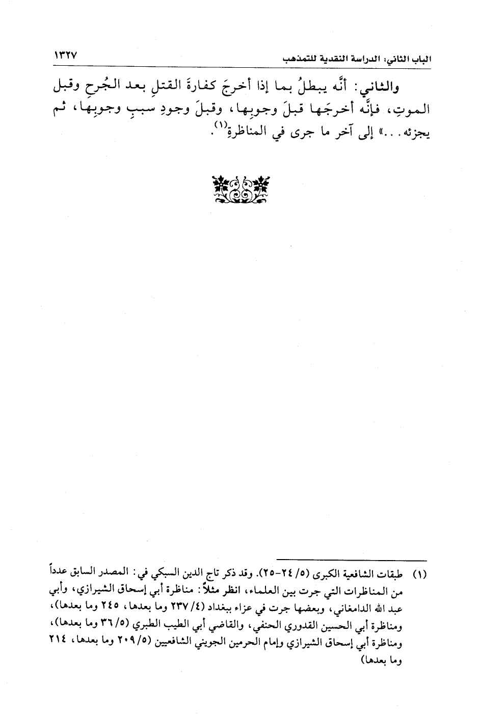 (¬١) طبقات الشافعية الكبرى (٥/ ٢٤ - ٢٥). وقد ذكر تاج الدين السبكي في: المصدر السابق عددًا من المناظرات التي جرت بين العلماء، انظر مثلًا: مناظرة أبي إسحاق الشيرازي، وأبي عبد الله الدامغاني، وبعضها جرت في عزاء ببغداد (٤/ ٢٣٧ وما بعدها، ٢٤٥ وما بعدها)، ومناظرة أبي الحسين القدوري الحنفي، والقاضي أبي الطيب الطبري (٥/ ٣٦ وما بعدها)، ومناظرة أبي إسحاق الشيرازي وإمام الحرمين الجويني الشافعيين (٥/ ٢٠٩ وما بعدها، ٢١٤ وما بعدها).