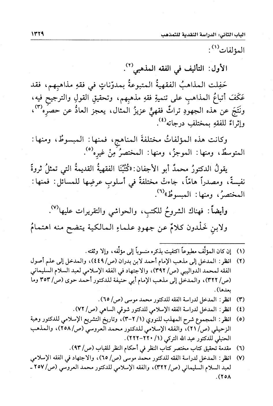 (¬٧) انظر: المدخل لدراسة الفقه للدكتور محمد موسى (ص/ ٦٥)، والاجتهاد في الفقه الإسلامي لعبد السلام السليماني (ص/ ٣٢٢)، والفقه الإسلامي للدكتور محمد العروسي (ص/ ٢٥٧ - ٢٥٨).