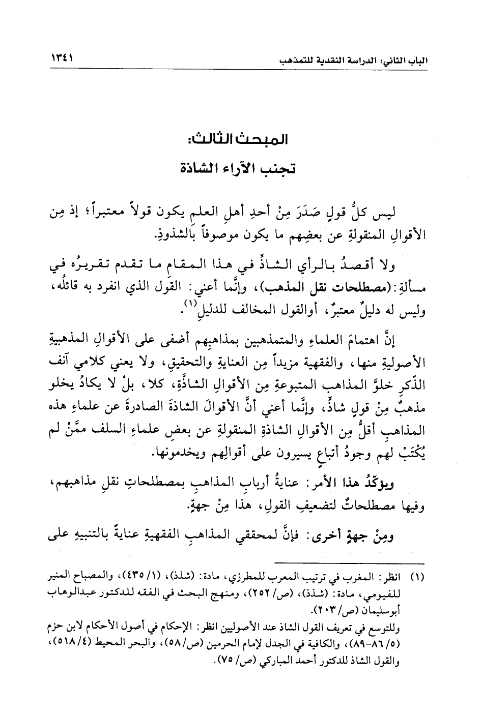 (¬١) انظر: المغرب في ترتيب المعرب للمطرزي، مادة: (شذذ)، (١/ ٤٣٥)، والمصباح المنير للفيومي، مادة: (شذذ)، (ص/ ٢٥٢)، ومنهج البحث في الفقه للدكتور عبد الوهاب أبو سليمان (ص/ ٢٠٣).