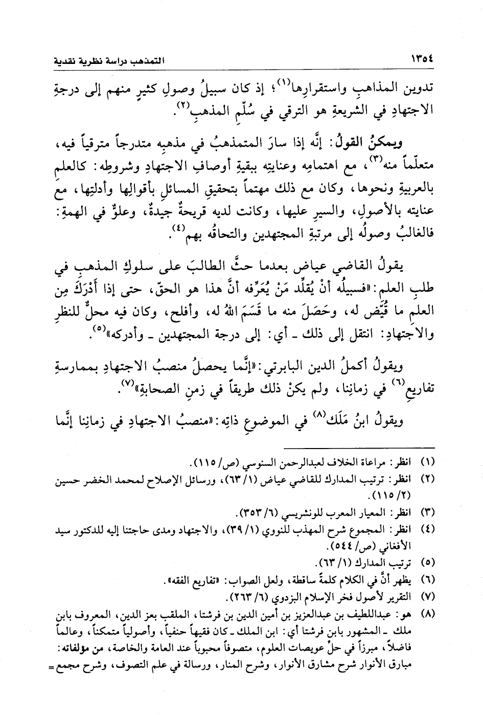 ويقولُ ابنُ مَلَك (¬٨) في الموضوعِ ذاتِه: "منصبُ الاجتهادِ في زمانِنا إنَّما