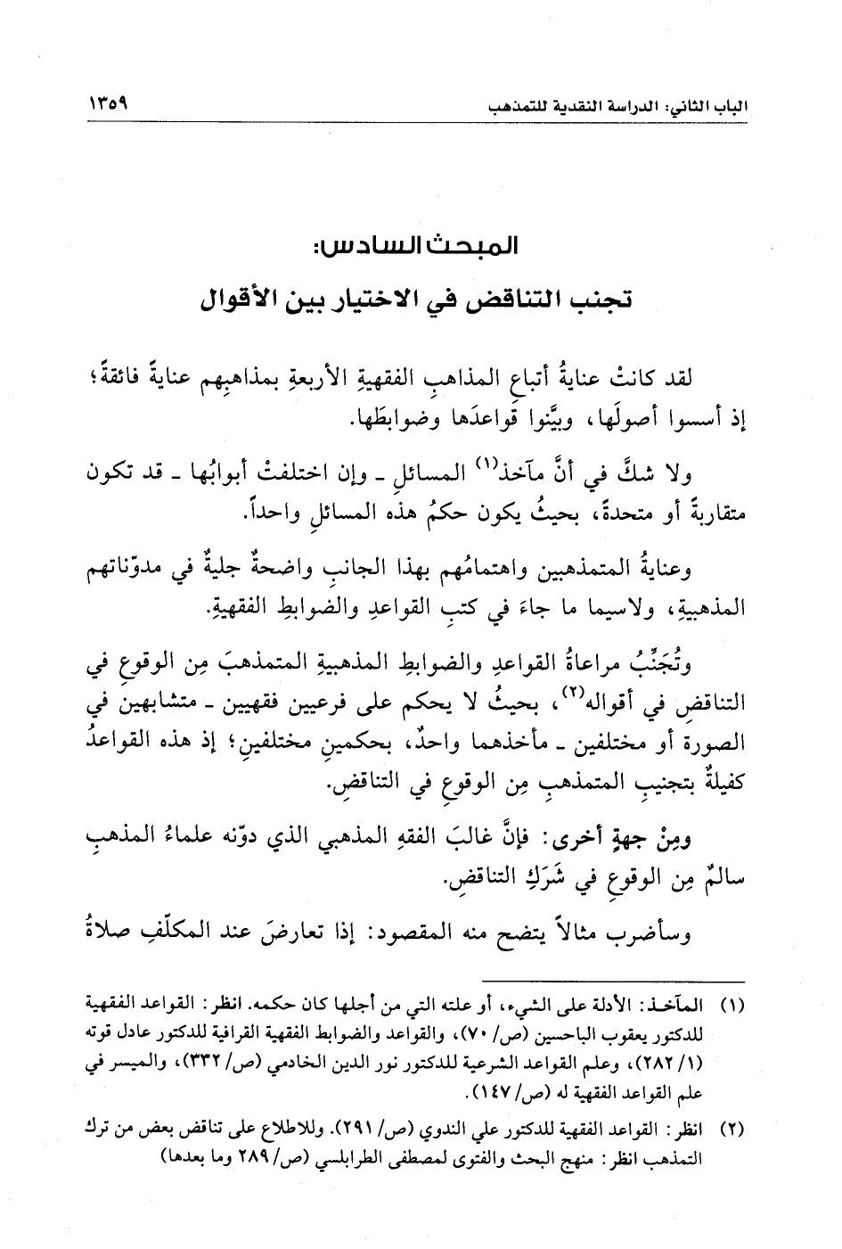 (¬٢) انظر: القواعد الفقهية للدكتور علي الندوي (ص/ ٢٩١). وللاطلاع على تناقض بعض من ترك التمذهب انظر: منهج البحث والفتوى لمصطفى الطرابلسي (ص/ ٢٨٩ وما بعدها).