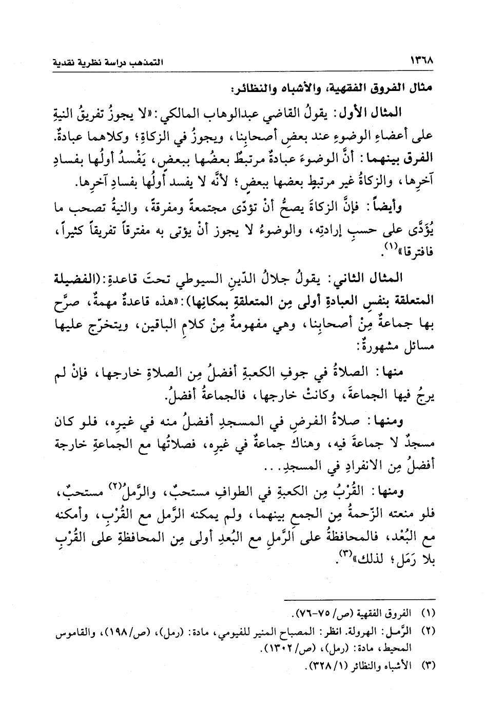 مثال الفروق الفقهية، والأشباه والنظائر: