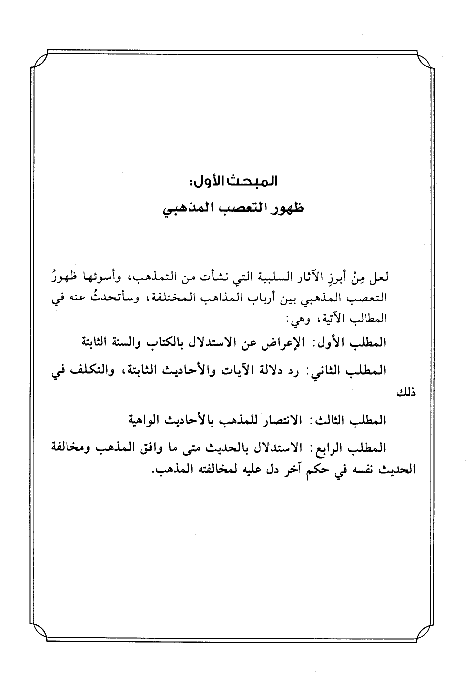 لعل مِنْ أبرزِ الآثار السلبية التي نشأت من التمذهب، وأسوئها ظهورُ التعصب المذهبي بين أرباب المذاهب المختلفة، وسأتحدثُ عنه في المطالب الآتية، وهي:
