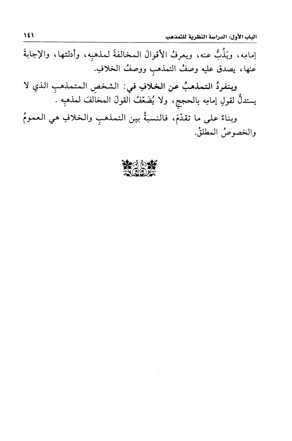 إمامِه، ويَذُبُّ عنه، ويعرفُ الأقوالَ المخالفةَ لمذهبِه، وأدلتها، والإجابةَ عنها، يصدق عليه وصفُ التمذهبِ ووصف الخلافِ.
