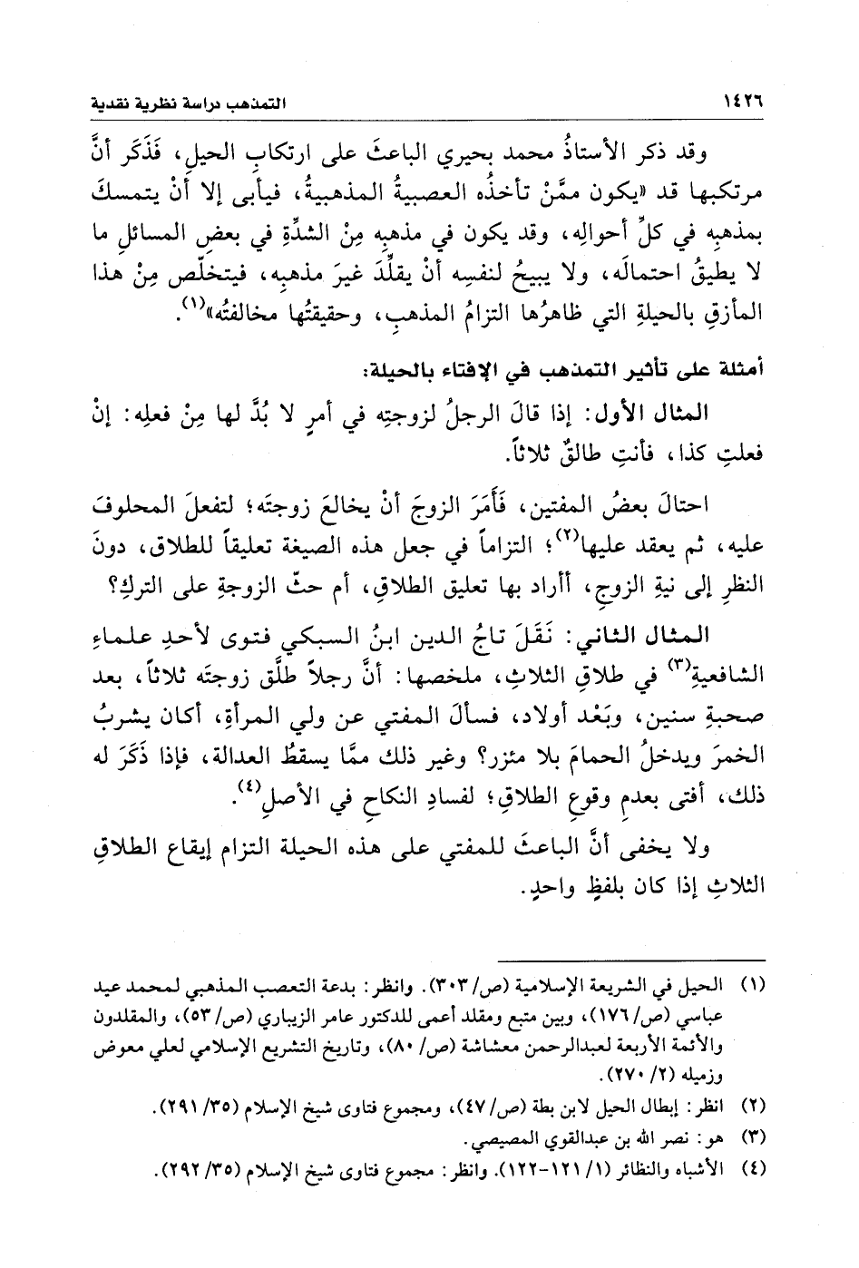 (¬١) الحيل في الشريعة الإسلامية (ص/ ٣٠٣). وانظر: بدعة التعصب المذهبي لمحمد عيد عباسي (ص/ ١٧٦)، وبين متبع ومقلد أعمى للدكتور عامر الزيباري (ص/ ٥٣)، والمقلدون والأئمة الأربعة لعبد الرحمن معشاشة (ص/ ٨٠)، وتاريخ التشريع الإسلامي لعلي معوض وزميله (٢/ ٢٧٠).