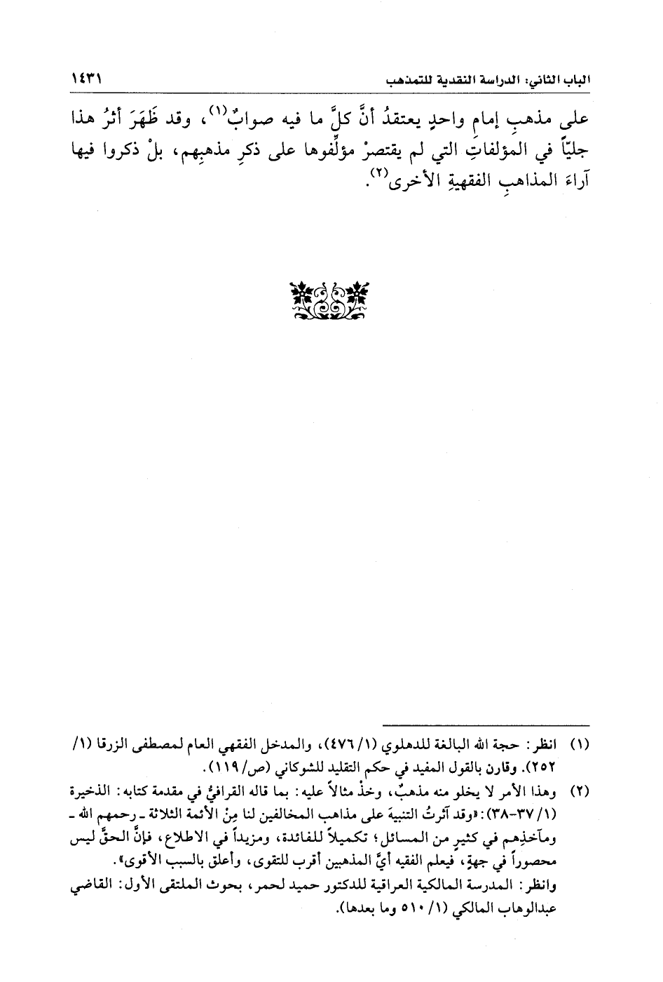(¬١) انظر: حجة الله البالغة للدهلوي (١/ ٤٧٦)، والمدخل الفقهي العام لمصطفى الزرقا (١/ ٢٥٢). وقارن بالقول المفيد في حكم التقليد للشوكاني (ص/ ١١٩).