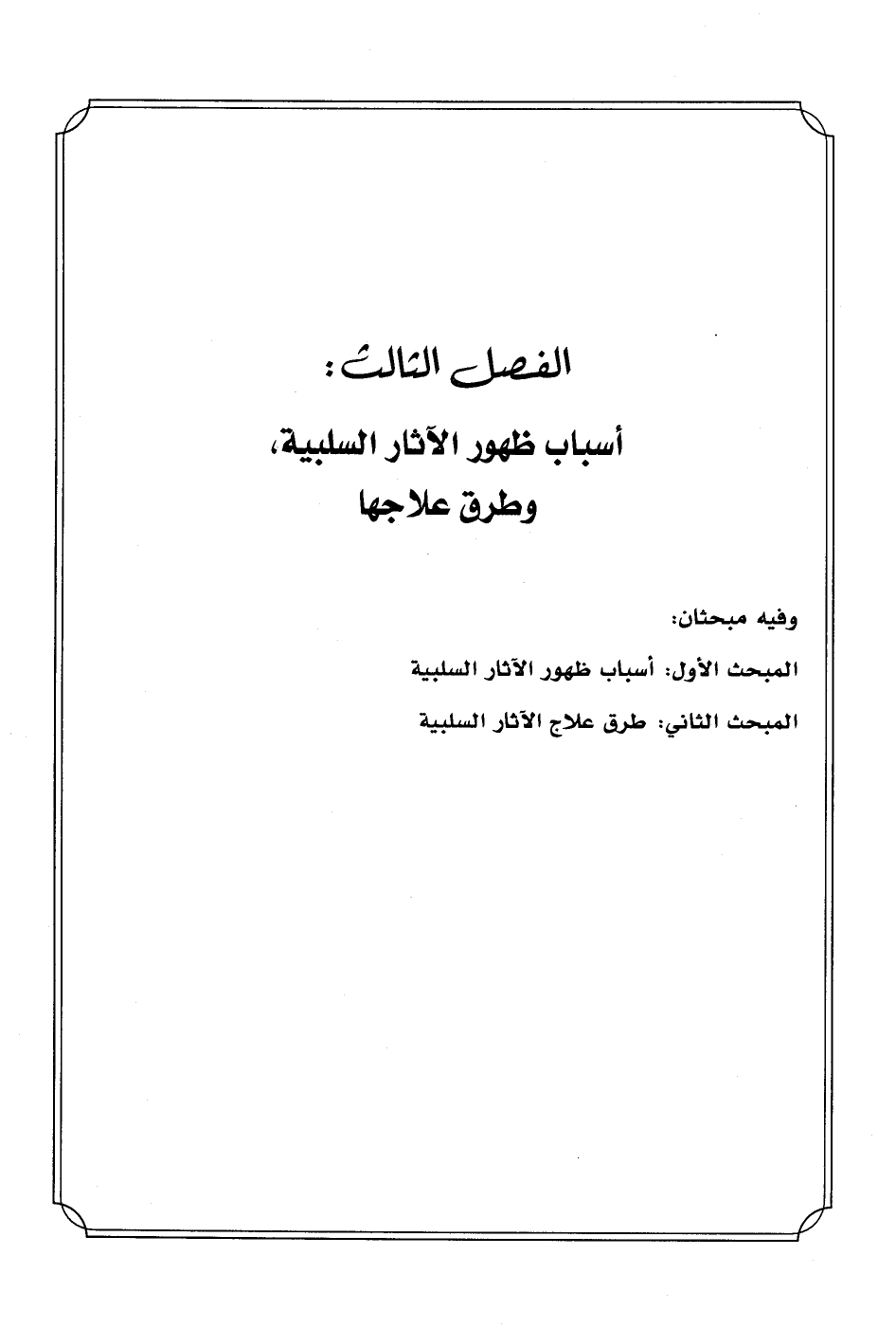 الفصل الثالث: أسباب ظهور الآثار السلبية، وطرق علاجها