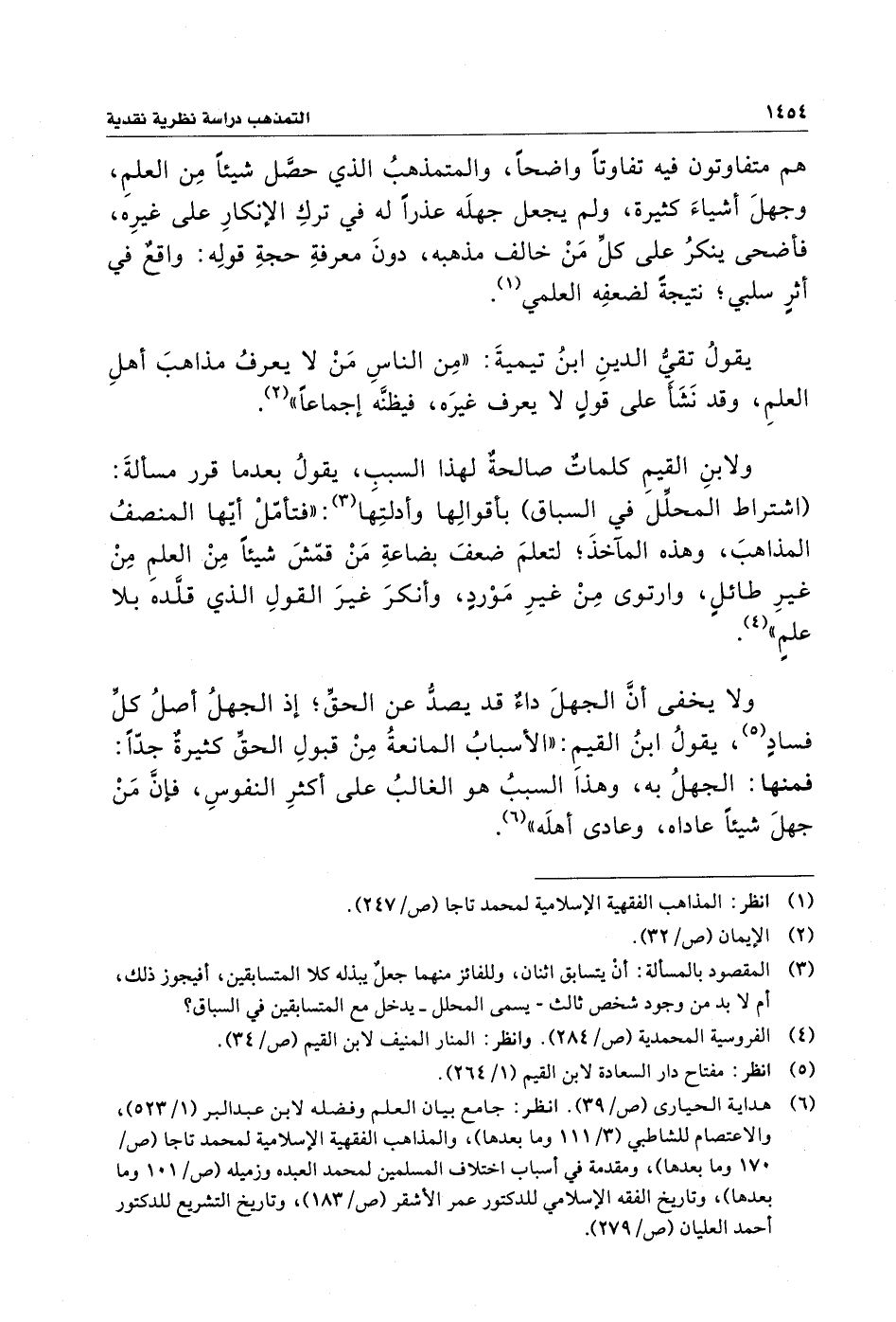 يقولُ تقيُّ الدينِ بنُ تيميةَ: "مِن الناسِ مَنْ لا يعرفُ مذاهبَ أهلِ العلمِ، وقد نَشَأَ على قولٍ لا يعرف غيرَه، فيظنَّه إجماعًا" (¬٢).