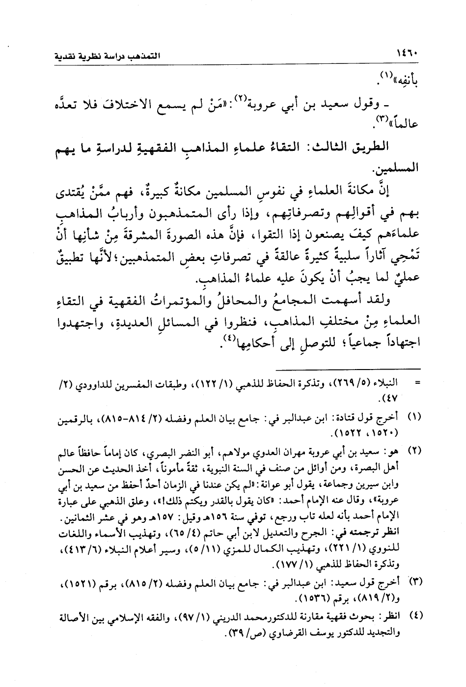 - وقول سعيد بن أبي عروبة (¬٢): "مَنْ لم يسمع الاختلافَ فلا تعدَّه عالمًا" (¬٣).