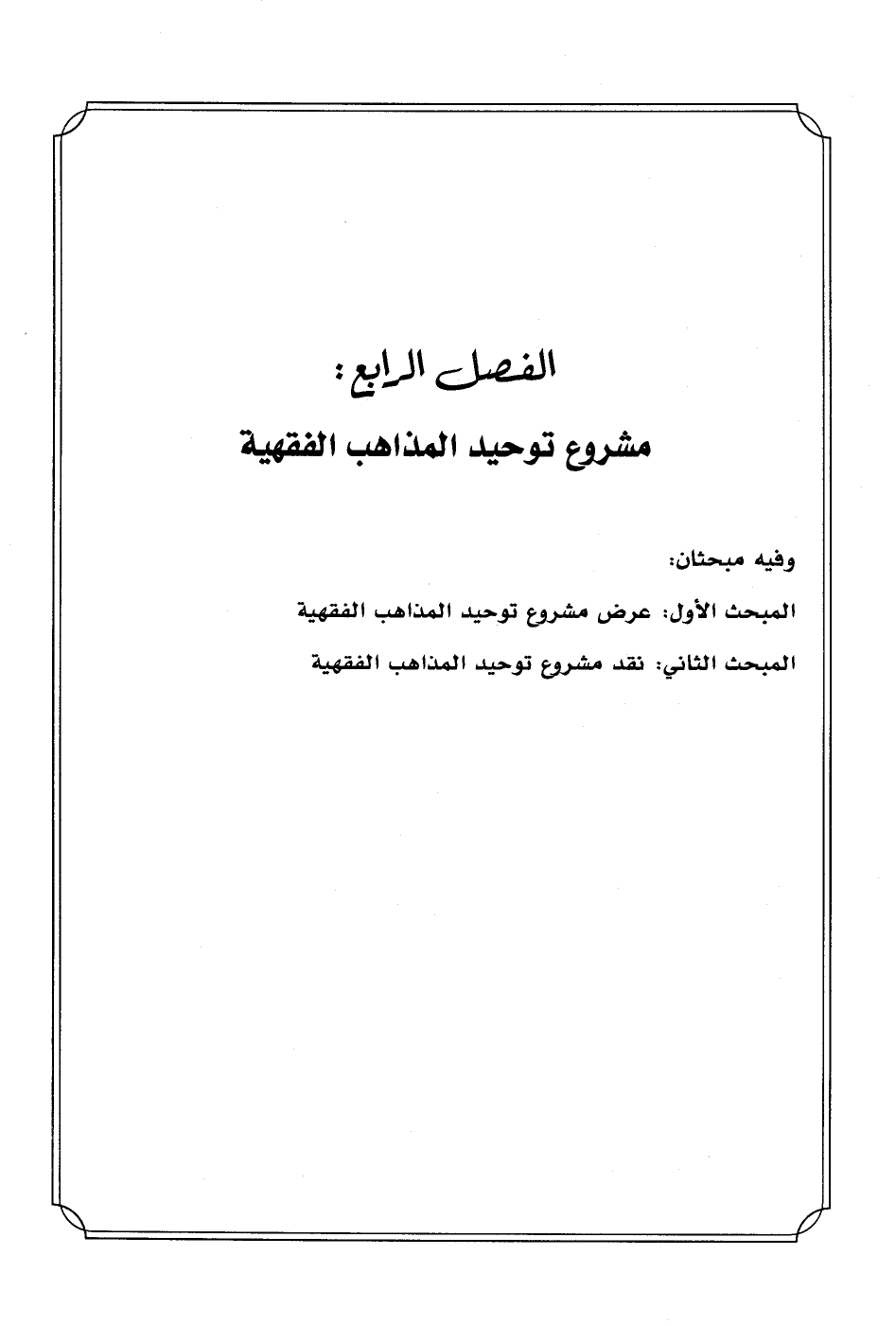 الفصل الرابع: مشروع توحيد المذاهب الفقهية