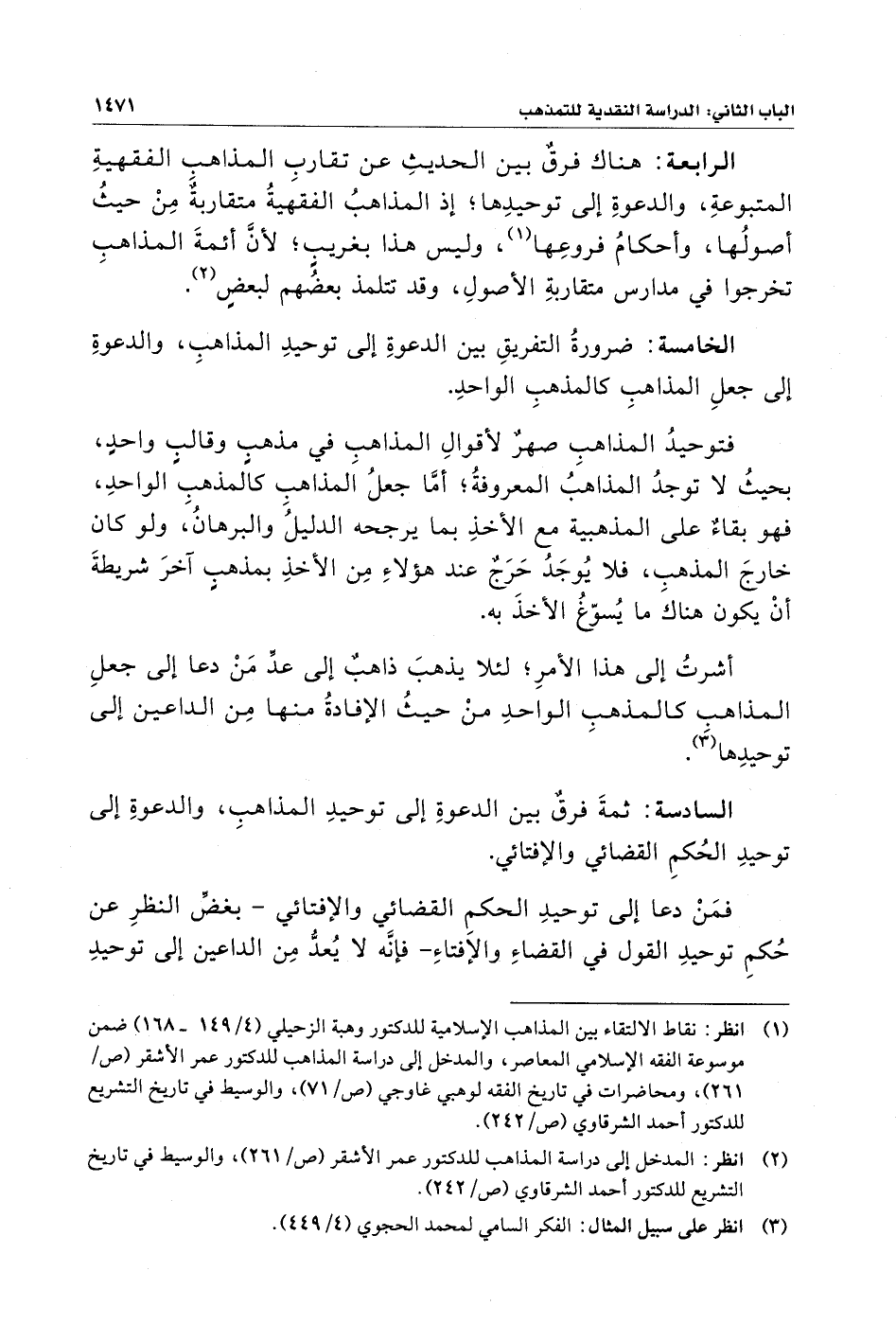أشرتُ إلى هذا الأمرِ؛ لئلا يذهبَ ذاهبٌ إلى عدِّ مَنْ دعا إلى جعلِ المذاهب كالمذهبِ الواحدِ منْ حيثُ الإفادةُ منها مِن الداعين إلى توحيدِها (¬٣).
