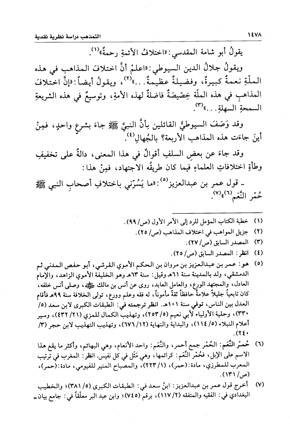 - قول عمر بن عبد العزيز (¬٥): "ما يَسُرّني باختلافِ أصحاب النبي - صلى الله عليه وسلم - حُمْر النَّعَم (¬٦) " (¬٧).