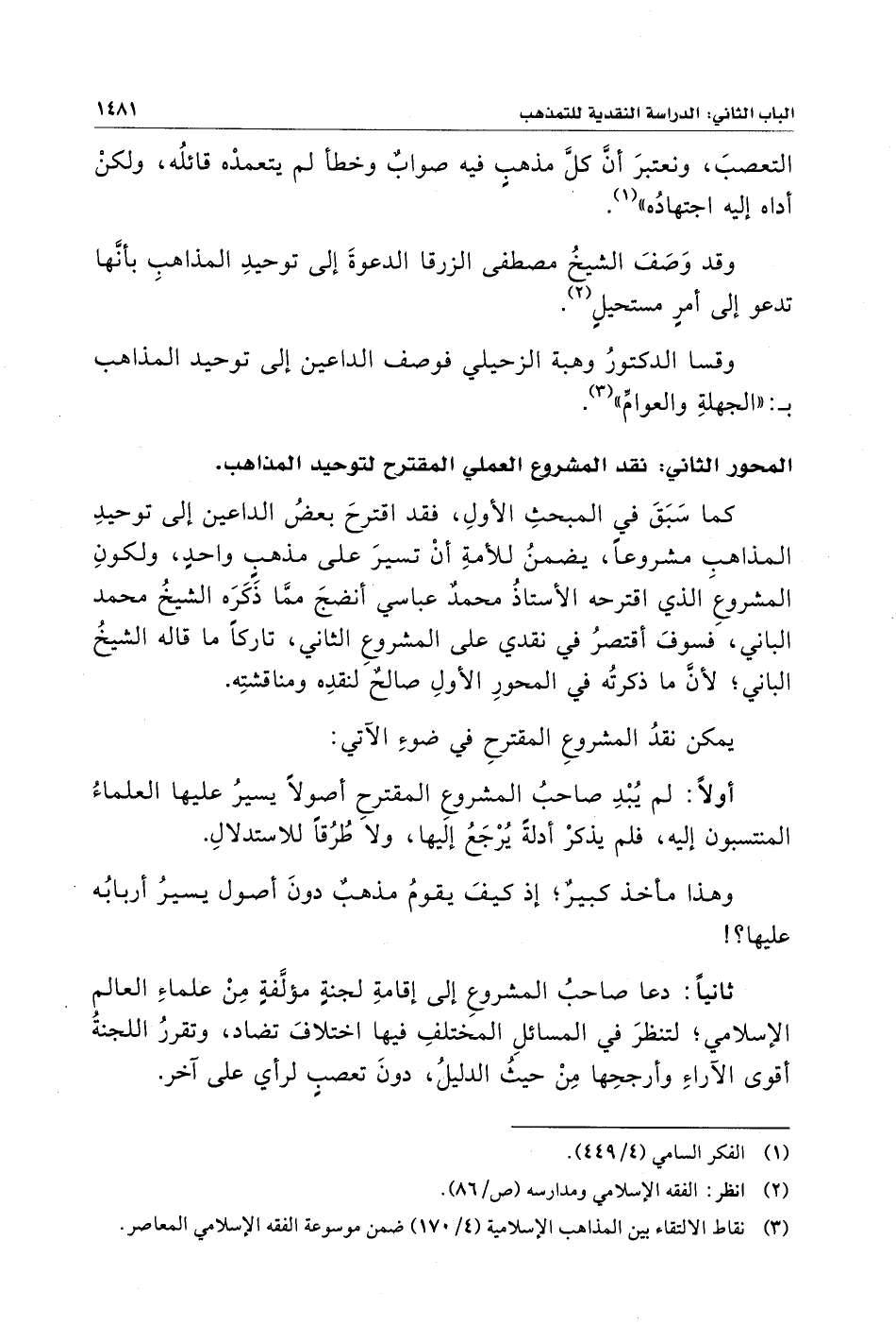 المحور الثاني: نقد المشروع العملي المقترح لتوحيد المذاهب.
