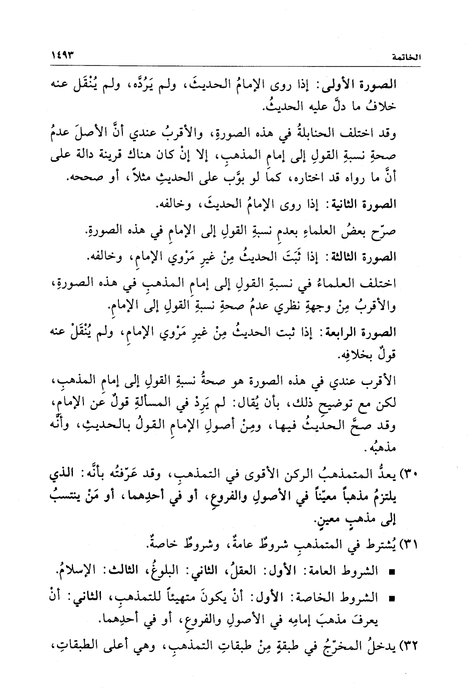 ٣١) يُشترط في المتمذهبِ شروطٌ عامةٌ، وشروطٌ خاصةٌ.
