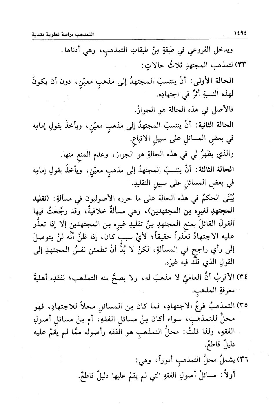 ٣٣) لتمذهب المجتهدِ ثلاثُ حالاتٍ: