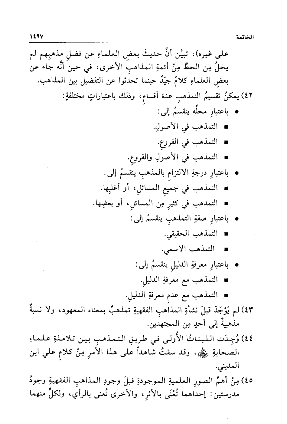 ٤٢) يمكنُ تقسيمُ التمذهبِ عدة أقسامٍ، وذلك باعتباراتٍ مختلفةٍ: