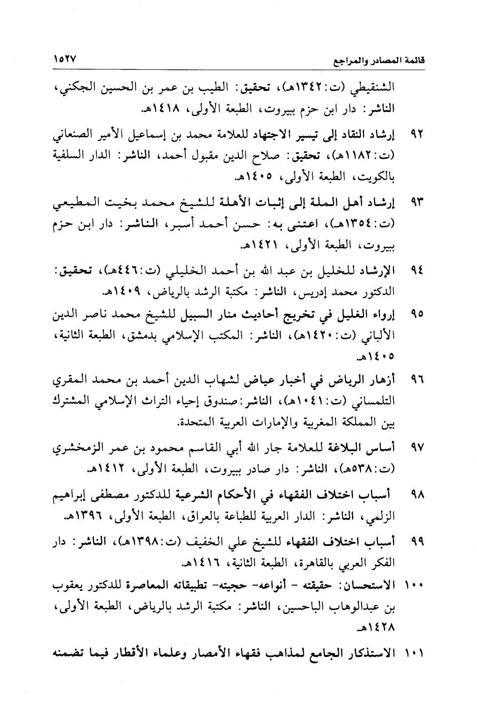 ٩٢ - إرشاد النقاد إلى تيسير الاجتهاد للعلامة محمد بن إسماعيل الأمير الصنعاني (ت: ١١٨٢ هـ)، تحقيق: صلاح الدين مقبول أحمد، الناشر: الدار السلفية بالكويت، الطبعة الأولى، ١٤٠٥ هـ.