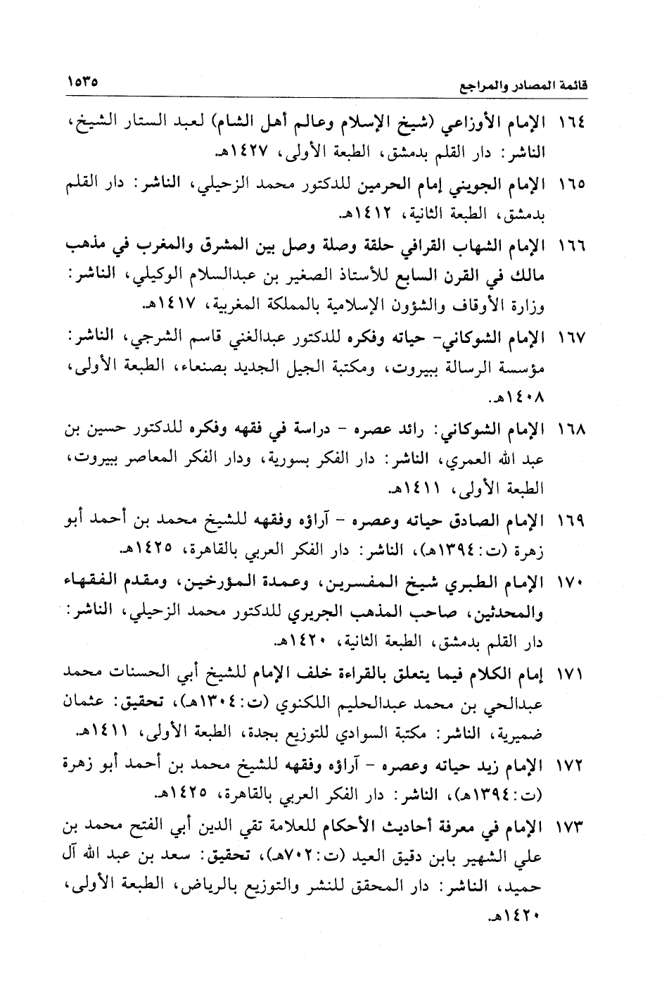 ١٦٥ - الإمام الجويني إمام الحرمين للدكتور محمد الزحيلي، الناشر: دار القلم بدمشق، الطبعة الثانية، ١٤١٢ هـ.