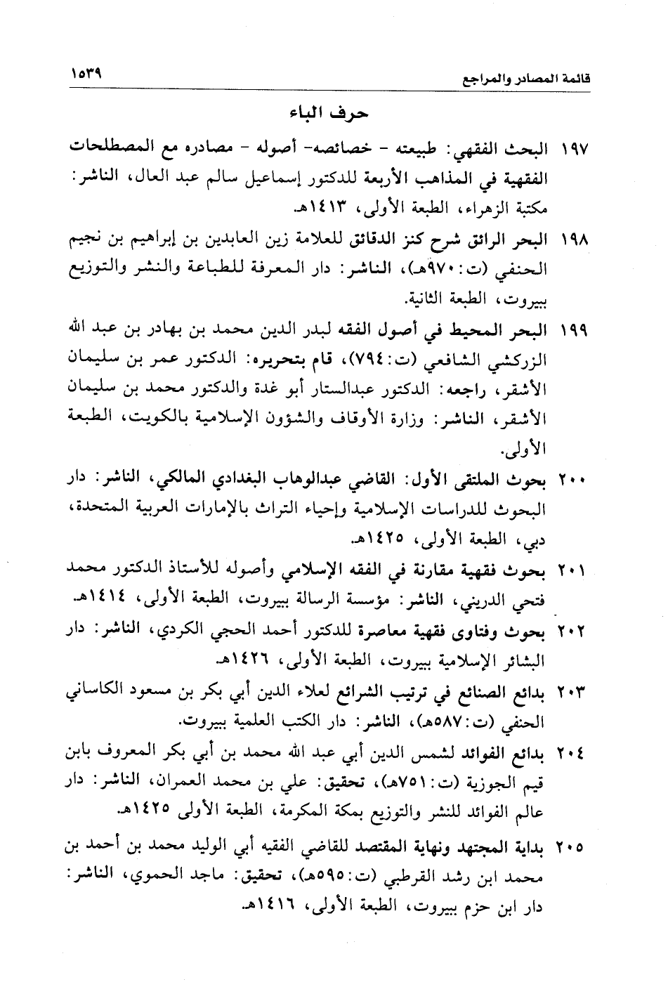 ٢٠٥ - بداية المجتهد ونهاية المقتصد للقاضي الفقيه أبي الوليد محمد بن أحمد بن محمد بن رشد القرطبي (ت: ٥٩٥ هـ)، تحقيق: ماجد الحموي، الناشر: دار ابن حزم ببيروت، الطبعة الأولى، ١٤١٦ هـ.