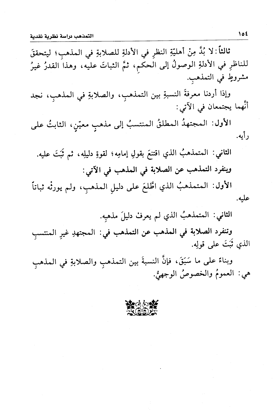 ثالثًا: لا بُدَّ مِنْ أهليّةِ النظرِ في الأدلةِ للصلابةِ في المذهبِ؛ ليتحققَ للناظرِ في الأدلةِ الوصولُ إلى الحكمِ، ثمَّ الثباتَ عليه، وهذا القدرُ غيرُ مشروطٍ في التمذهبِ.