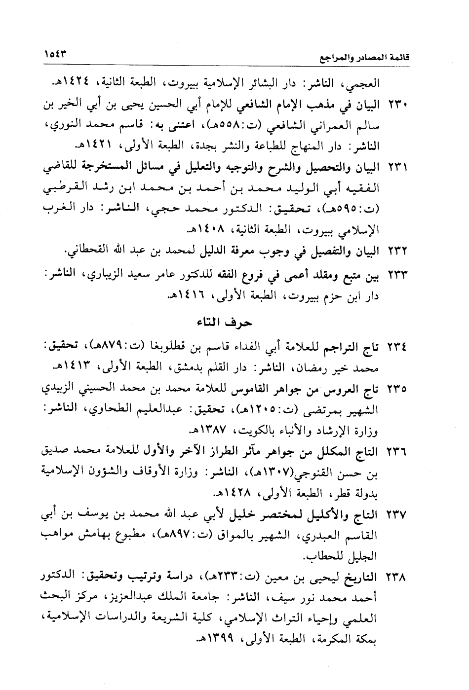 ٢٣٥ - تاج العروس من جواهر القاموس للعلامة محمد بن محمد الحسيني الزبيدي الشهير بمرتضى (ت: ١٢٠٥ هـ)، تحقيق: عبد العليم الطحاوي، الناشر: وزارة الإرشاد والأنباء بالكويت، ١٣٨٧ هـ.