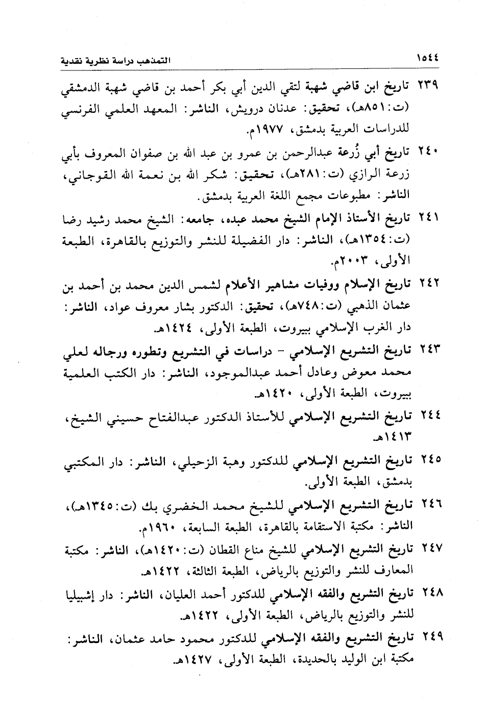 ٢٤٩ - تاريخ التشريع والفقه الإسلامي للدكتور محمود حامد عثمان، الناشر: مكتبة ابن الوليد بالحديدة، الطبعة الأولى، ١٤٢٧ هـ.