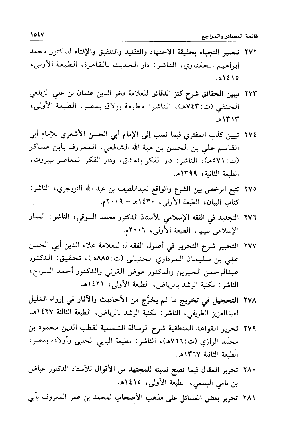٢٧٢ - تبصير النجباء بحقيقة الاجتهاد والتقليد والتلفيق والإفتاء للدكتور محمد إبراهيم الحفناوي، الناشر: دار الحديث بالقاهرة، الطبعة الأولى، ١٤١٥ هـ.