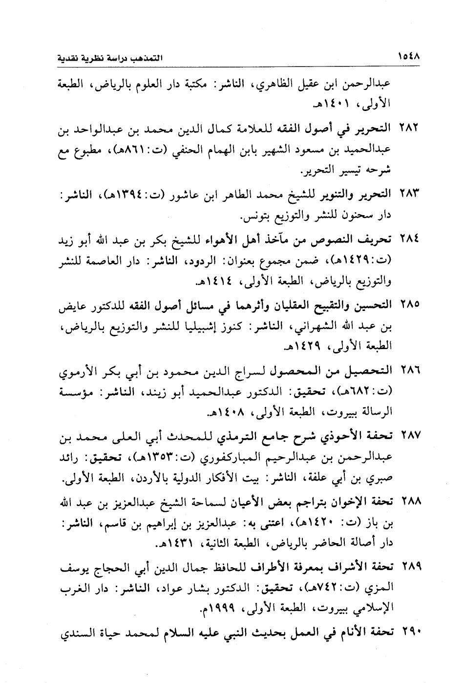 ٢٨٤ - تحريف النصوص من مآخذ أهل الأهواء للشيخ بكر بن عبد الله أبو زيد (ت: ١٤٢٩ هـ)، ضمن مجموع بعنوان: الردود، الناشر: دار العاصمة للنشر والتوزيع بالرياض، الطبعة الأولى، ١٤١٤ هـ.