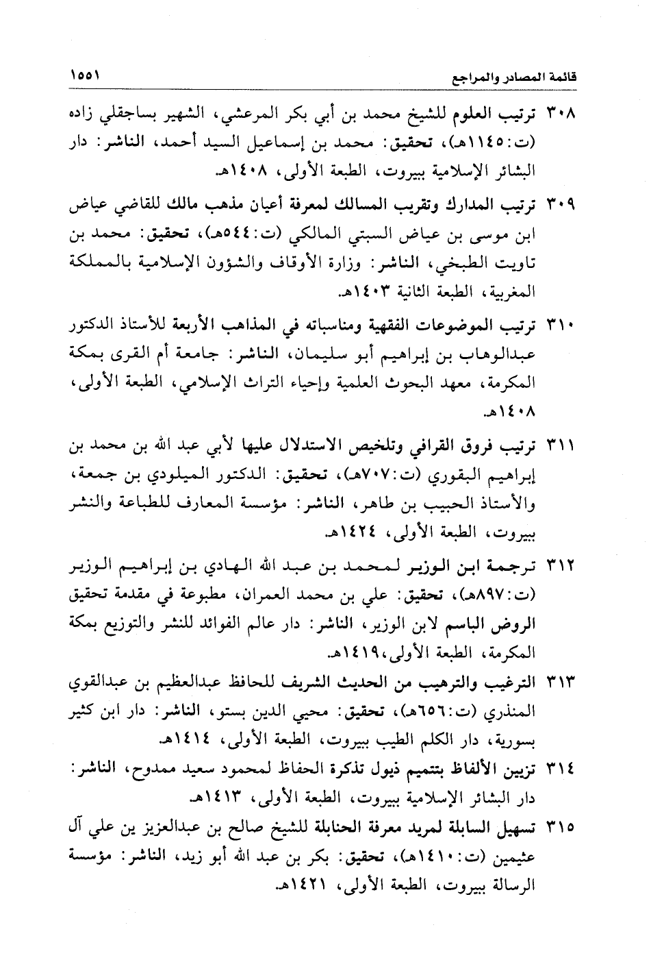 ٣٠٨ - ترتيب العلوم للشيخ محمد بن أبي بكر المرعشي، الشهير بساجقلي زاده (ت: ١١٤٥ هـ)، تحقيق: محمد بن إسماعيل السيد أحمد، الناشر: في دار البشائر الإسلامية ببيروت، الطبعة الأولى، ١٤٠٨ هـ.