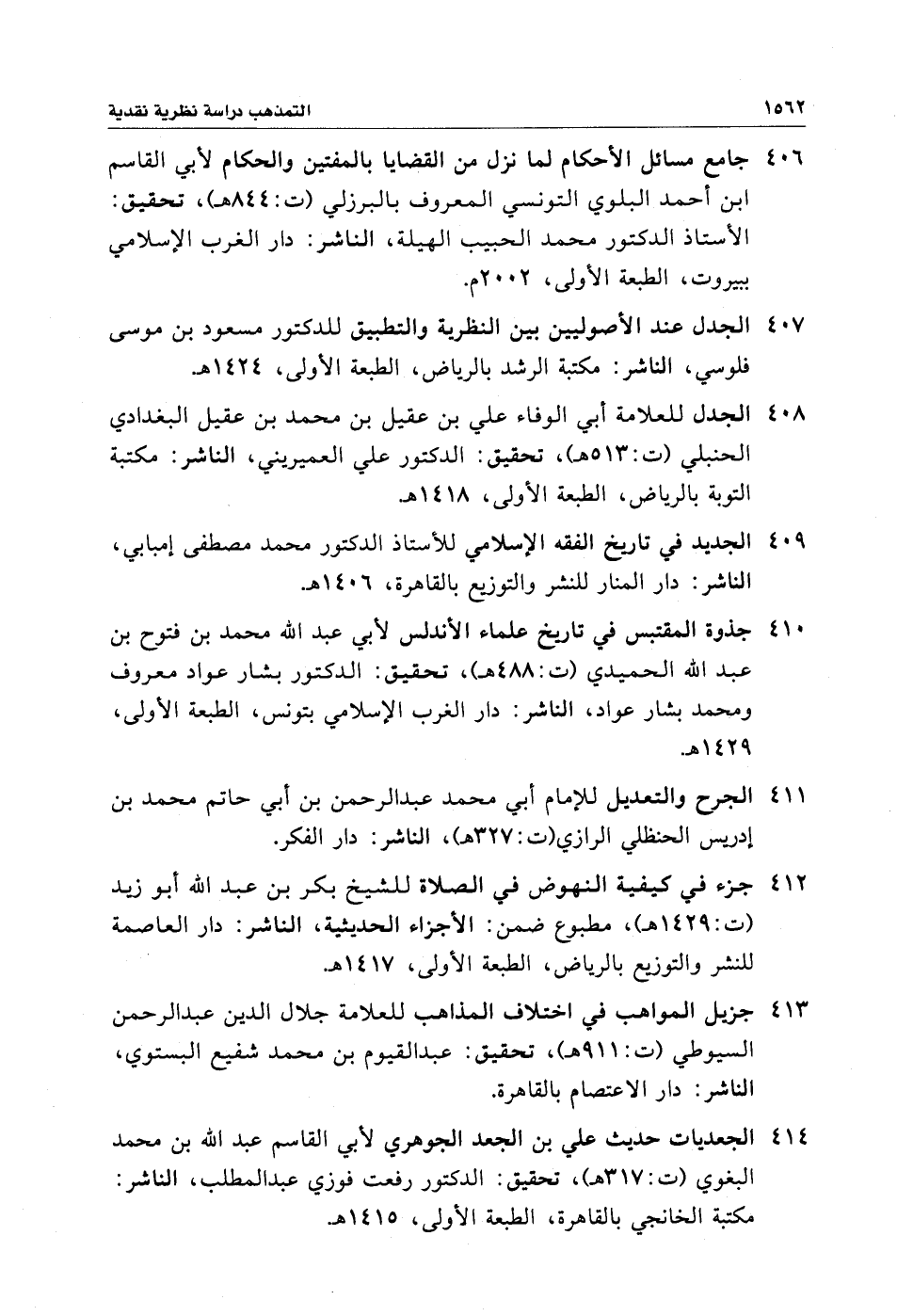 ٤٠٨ - الجدل للعلامة أبي الوفاء علي بن عقيل بن محمد بن عقيل البغدادي الحنبلي (ت: ٥١٣ هـ)، تحقيق: الدكتور علي العميريني، الناشر: مكتبة التوبة بالرياض، الطبعة الأولى، ١٤١٨ هـ.