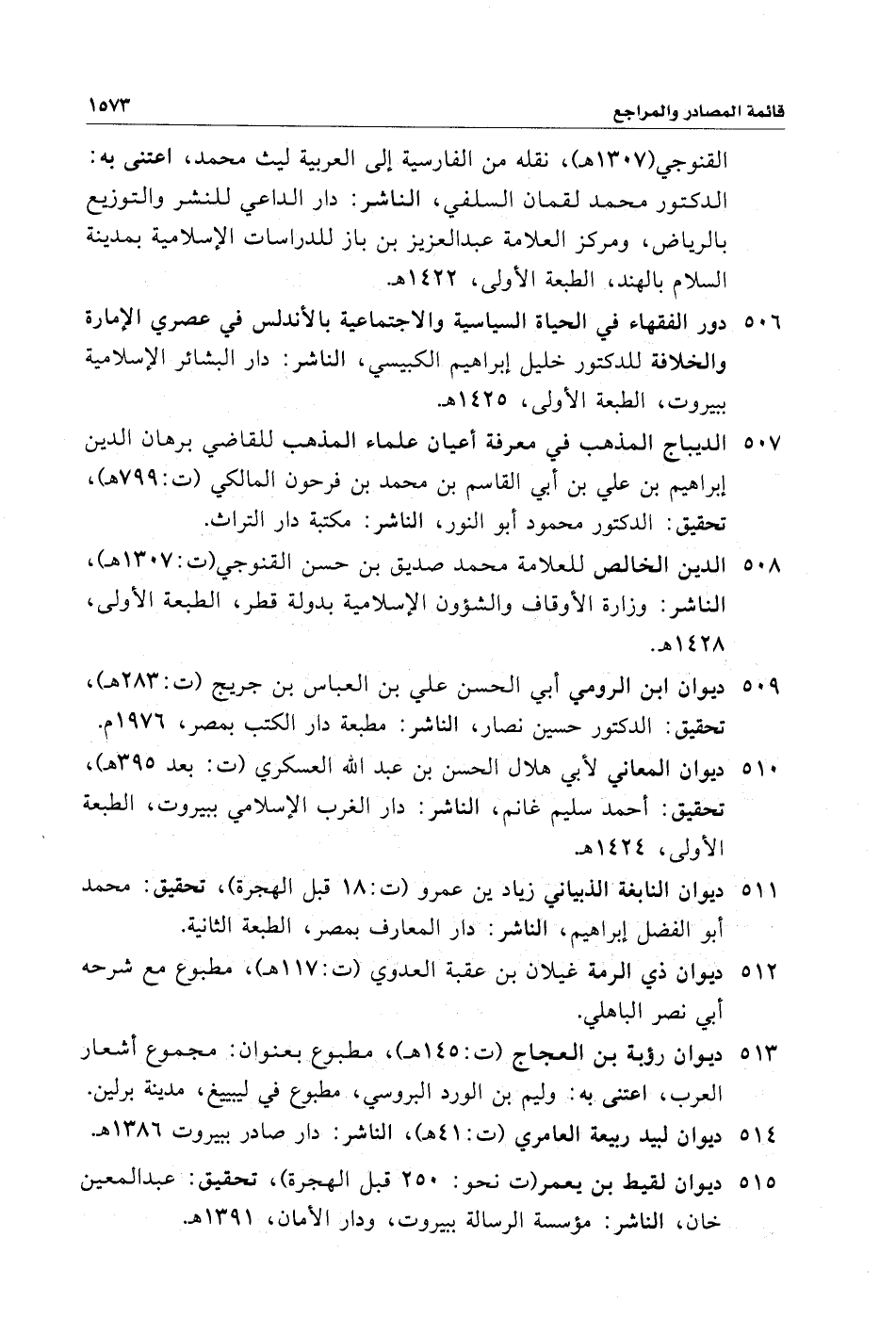 ٥٠٩ - ديوان ابن الرومي أبي الحسن علي بن العباس بن جريج (ت: ٢٨٣ هـ)، تحقيق: الدكتور حسين نصار، الناشر: مطبعة دار الكتب بمصر، ١٩٧٦ م.