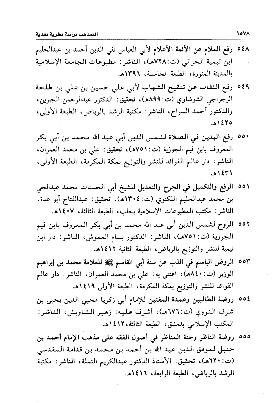 ٥٥٠ - رفع اليدين في الصلاة لشمس الدين أبي عبد الله محمد بن أبي بكر المعروف بابن قيم الجوزية (ت: ٧٥١ هـ)، تحقيق: علي بن محمد العمران، الناشر: دار عالم الفوائد للنشر والتوزيع بمكة المكرمة، الطبعة الأولى، ١٤٣١ هـ.