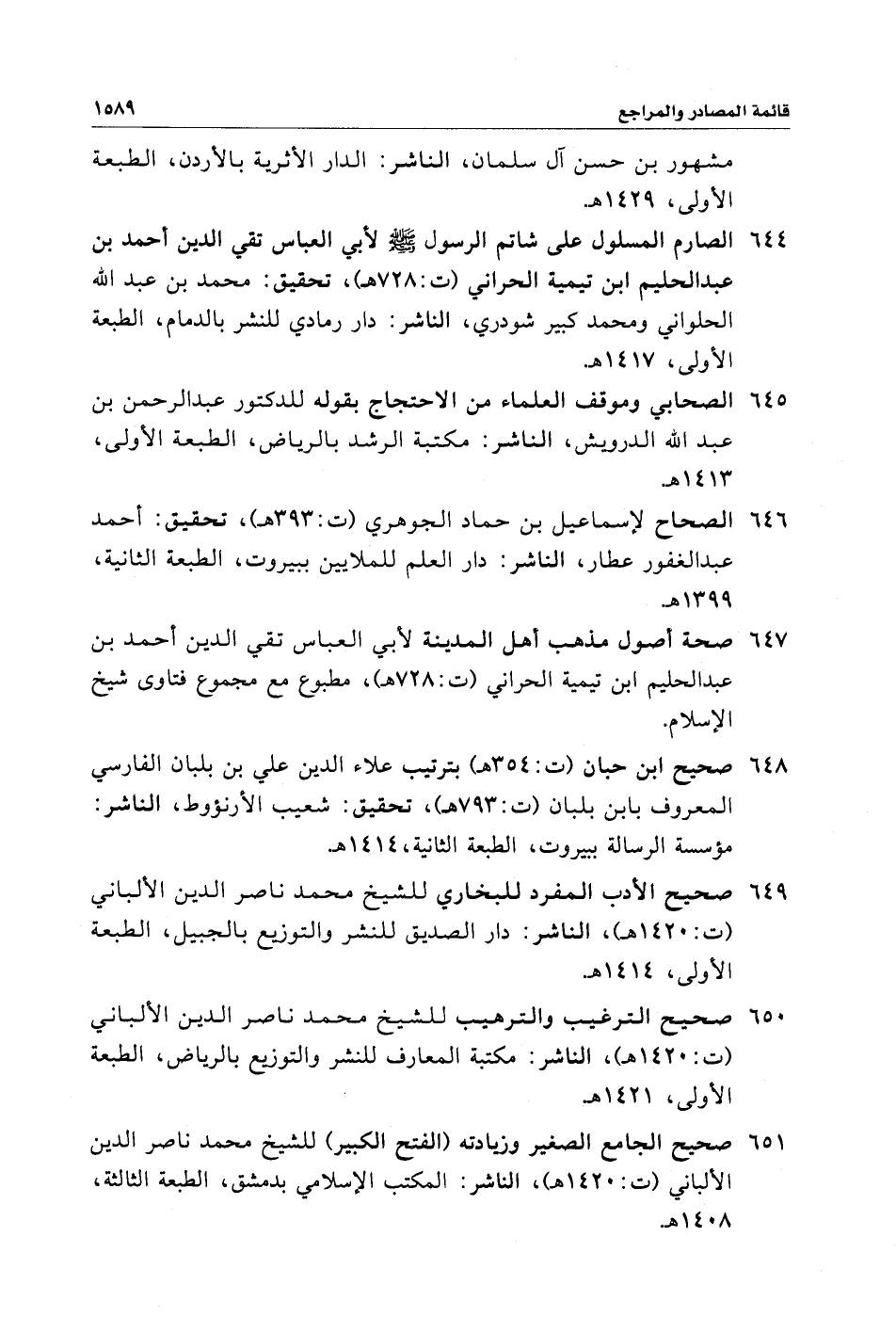 مشهور بن حسن آل سلمان، الناشر: الدار الأثرية بالأردن، الطبعة الأولى، ١٤٢٩ هـ.