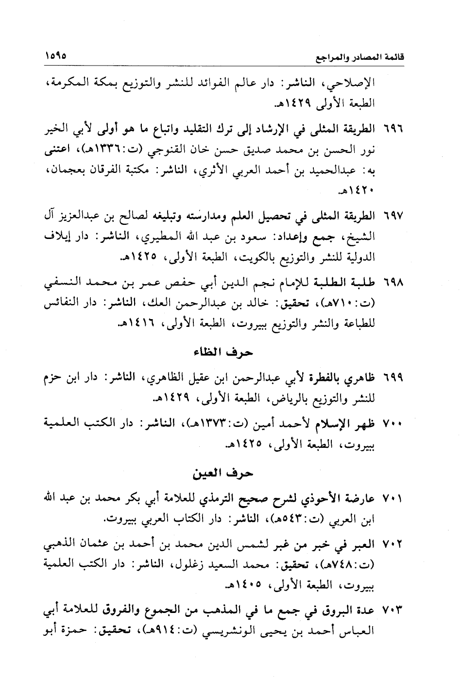 ٦٩٨ - طلبة الطلبة للإمام نجم الدين أبي حفص عمر بن محمد النسفي (ت: ٧١٠ هـ)، تحقيق: خالد بن عبد الرحمن العك، الناشر: دار النفائس للطباعة والنشر والتوزيع ببيروت، الطبعة الأولى، ١٤١٦ هـ.