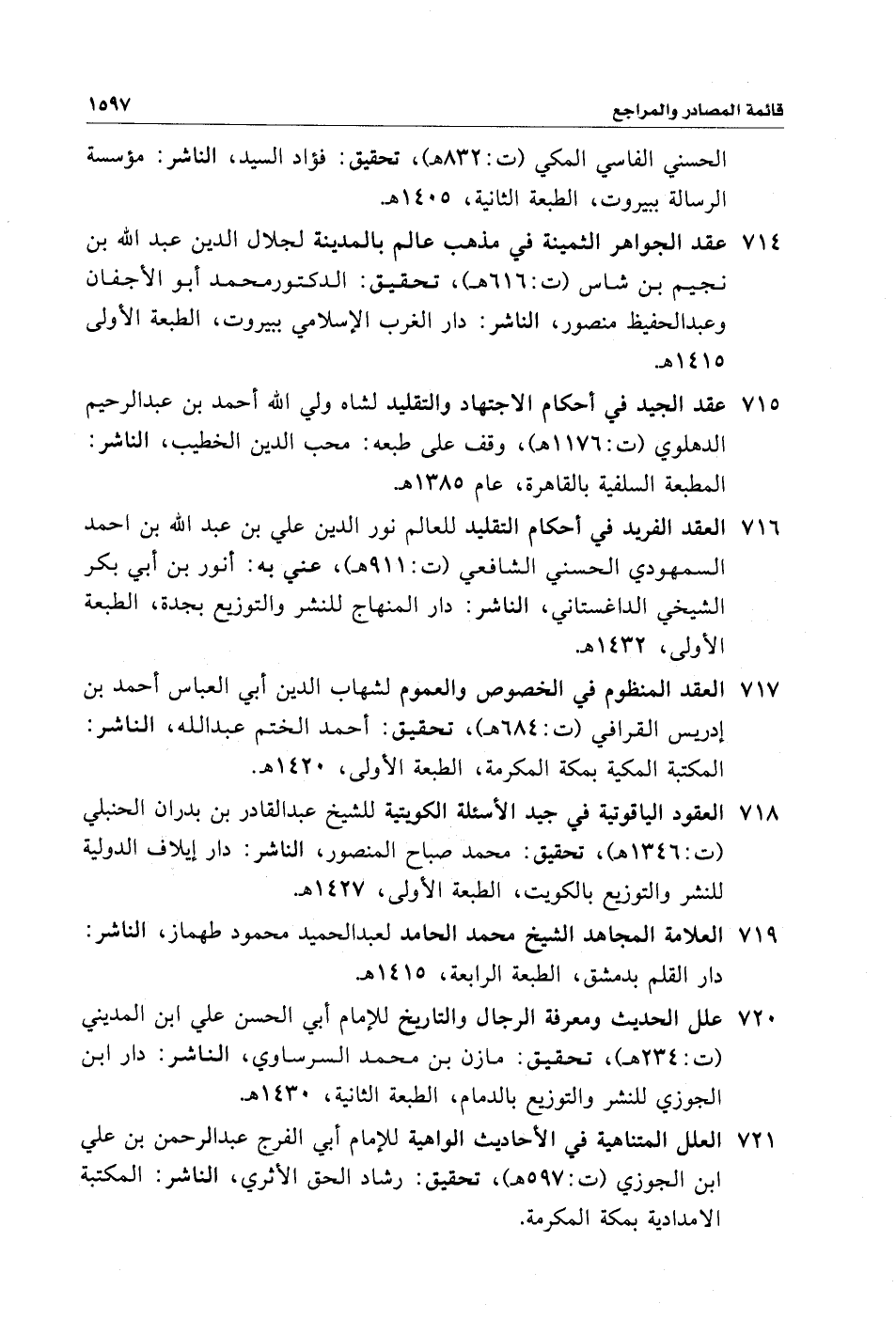 ٧١٥ - عقد الجيد في أحكام الاجتهاد والتقليد لشاه ولي الله أحمد بن عبد الرحيم الدهلوي (ت: ١١٧٦ هـ)، وقف على طبعه: محب الدين الخطيب، الناشر: المطبعة السلفية بالقاهرة، عام ١٣٨٥ هـ.