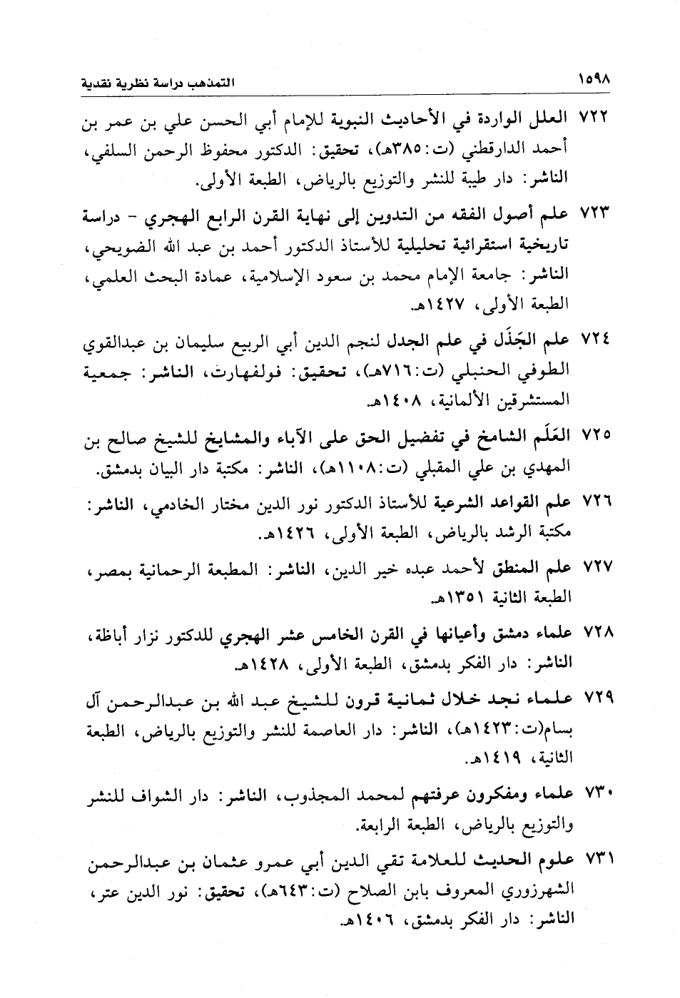 ٧٢٤ - علم الجَذَل في علم الجدل لنجم الدين أبي الربيع سليمان بن عبد القوي الطوفي الحنبلي (ت: ٧١٦ هـ)، تحقيق: فولفهارت، الناشر: جمعية المستشرقين الألمانية، ١٤٠٨ هـ.