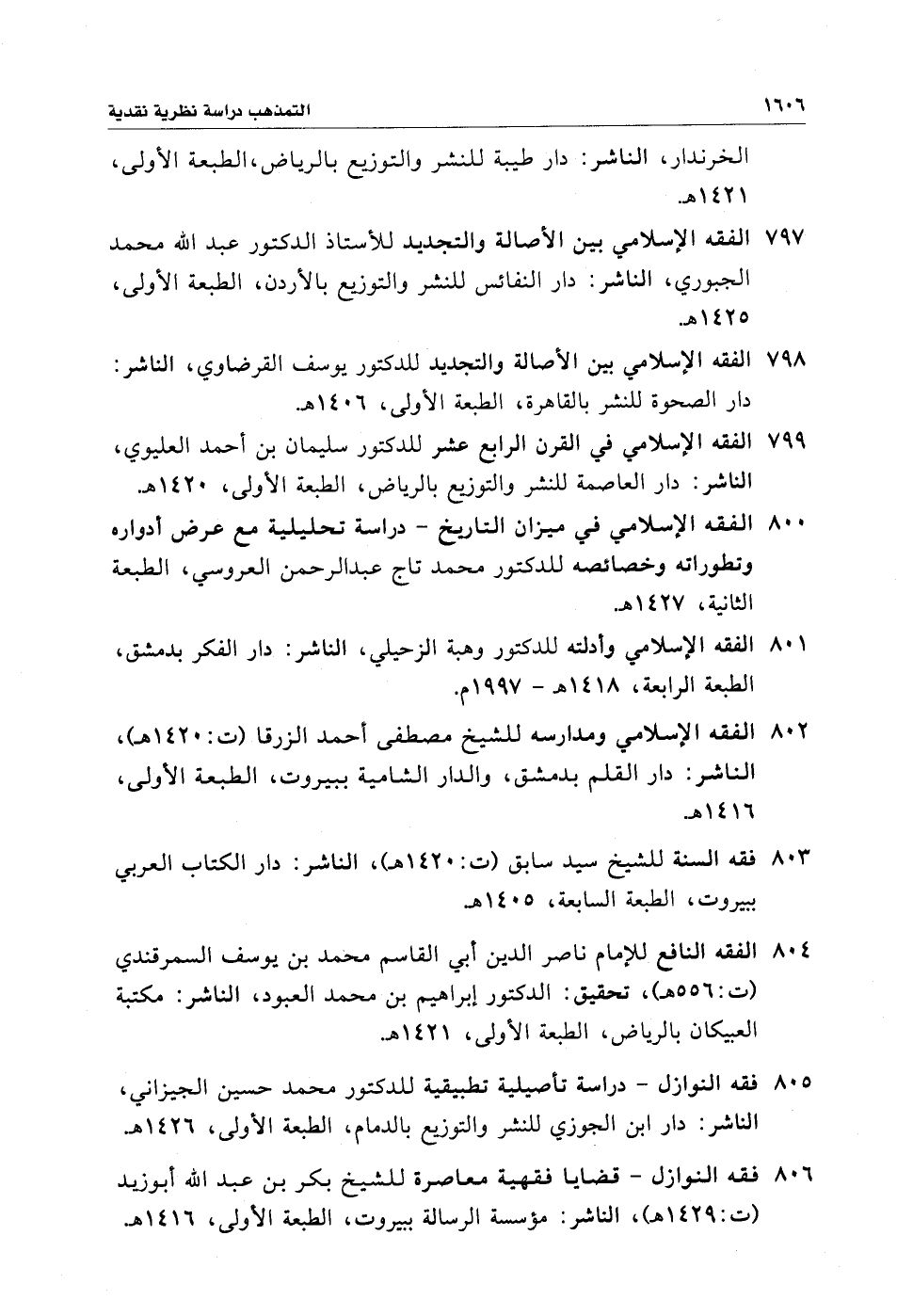 ٨٠٢ - الفقه الإسلامي ومدارسه للشيخ مصطفى أحمد الزرقا (ت: ١٤٢٠ هـ)، الناشر: دار القلم بدمشق، والدار الشامية ببيروت، الطبعة الأولى، ١٤١٦ هـ.