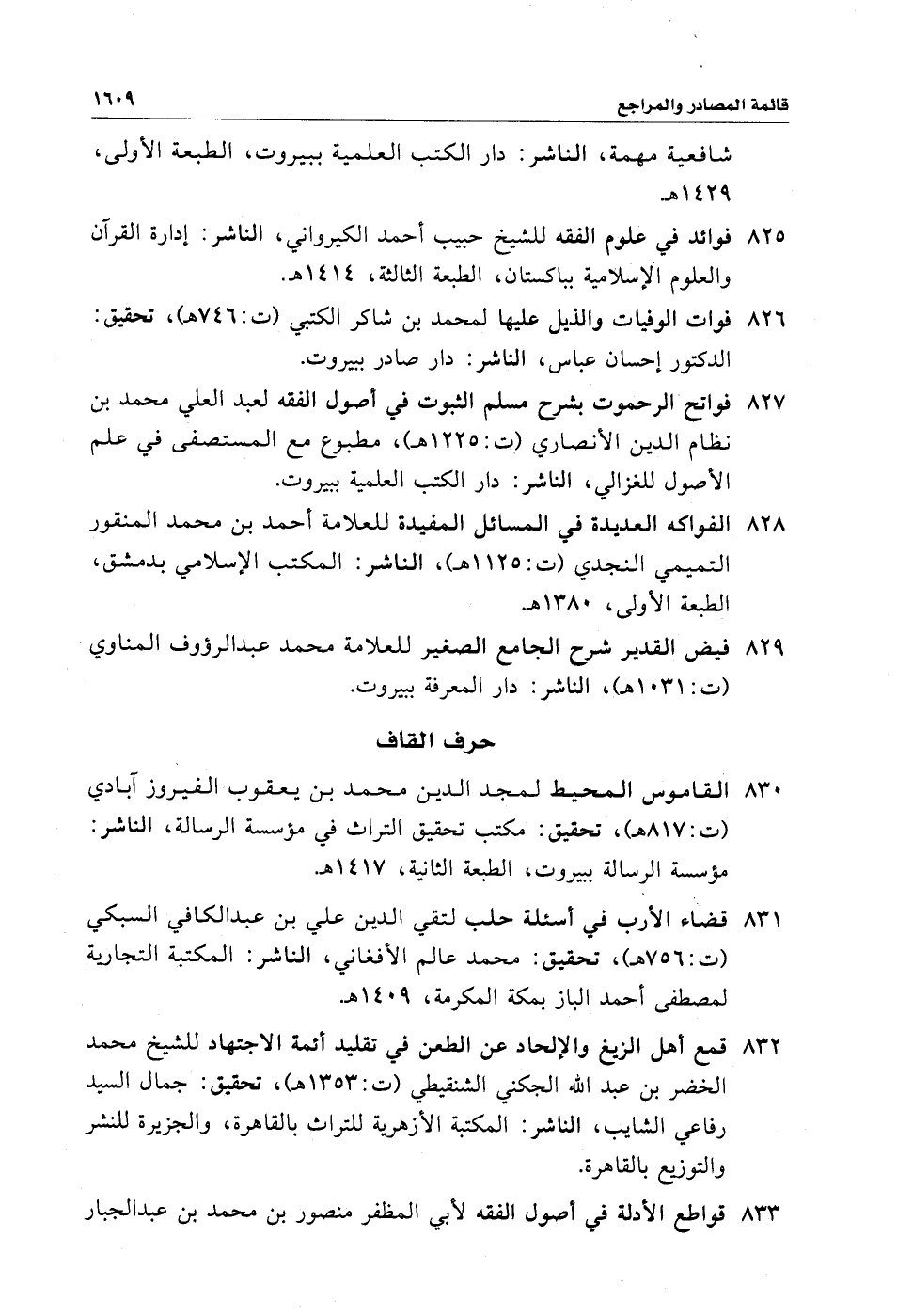 ٨٣٠ - القاموس المحيط لمجد الدين محمد بن يعقوب الفيروز آبادي (ت: ٨١٧ هـ)، تحقيق: مكتب تحقيق التراث في مؤسسة الرسالة، الناشر: مؤسسة الرسالة ببيروت، الطبعة الثانية، ١٤١٧ هـ.