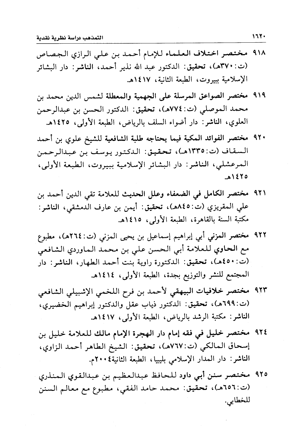 ٩١٩ - مختصر الصواعق المرسلة على الجهمية والمعطلة لشمس الدين محمد بن محمد الموصلي (ت: ٧٧٤ هـ)، تحقيق: الدكتور الحسن بن عبد الرحمن العلوي، الناشر: دار أضواء السلف بالرياض، الطبعة الأولى، ١٤٢٥ هـ.