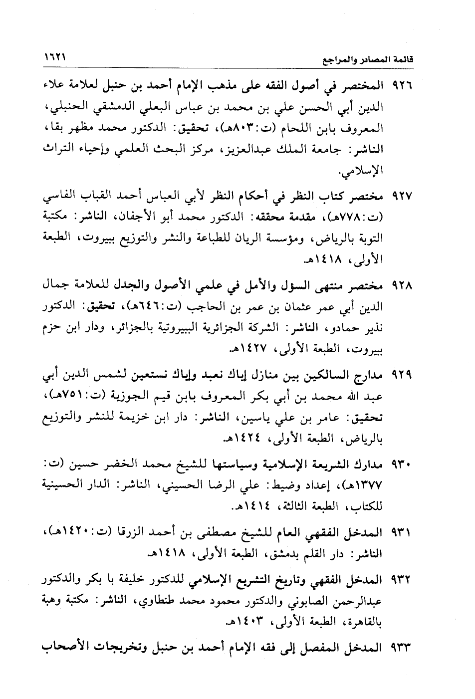 ٩٢٦ - المختصر في أصول الفقه على مذهب الإِمام أحمد بن حنبل للعلامة علاء الدين أبي الحسن عليّ بن محمد بن عبَّاس البعلي الدمشقي الحنبلي، المعروف بابن اللحام (ت: ٨٠٣ هـ)، تحقيق: الدكتور محمد مظهر بقا، الناشر: جامعة الملك عبد العزيز، مركز البحث العلمي وإحياء التراث الإِسلامي.