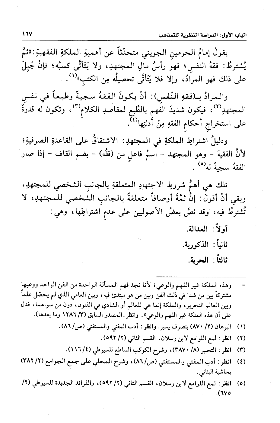 ودليلُ اشتراطِ الملكةِ في المجتهدِ: الاشتقاقُ على القاعدةِ الصرفيةِ؛ لأنَّ الفقيهَ - وهو المجتهد - اسمُ فاعلٍ من (فقُه) - بضم القاف - إذا صار الفقهُ سجيةً له (¬٥).