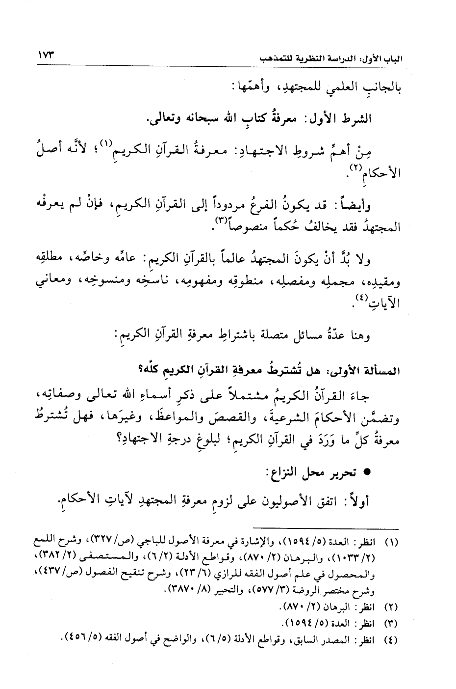 مِنْ أهمِّ شروطِ الاجتهادِ: معرفةُ القرآنِ الكريمِ (¬١)؛ لأنَّه أصلُ الأحكامِ (¬٢).