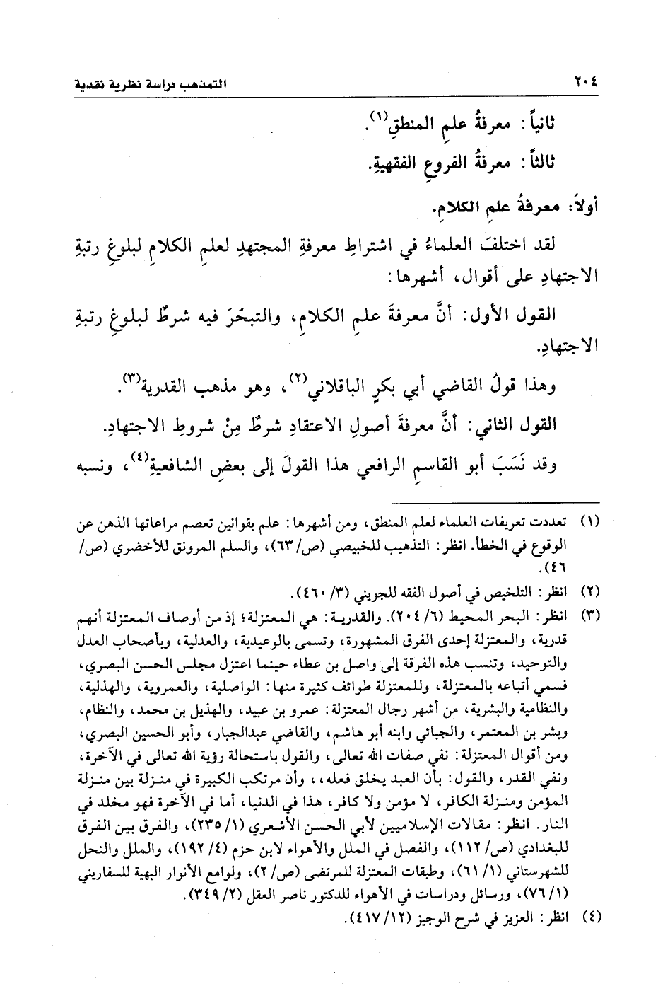 القول الأول: أنَّ معرفةَ علمِ الكلامِ، والتبحّرَ فيه شرطٌ لبلوغِ رتبةِ الاجتهادِ.