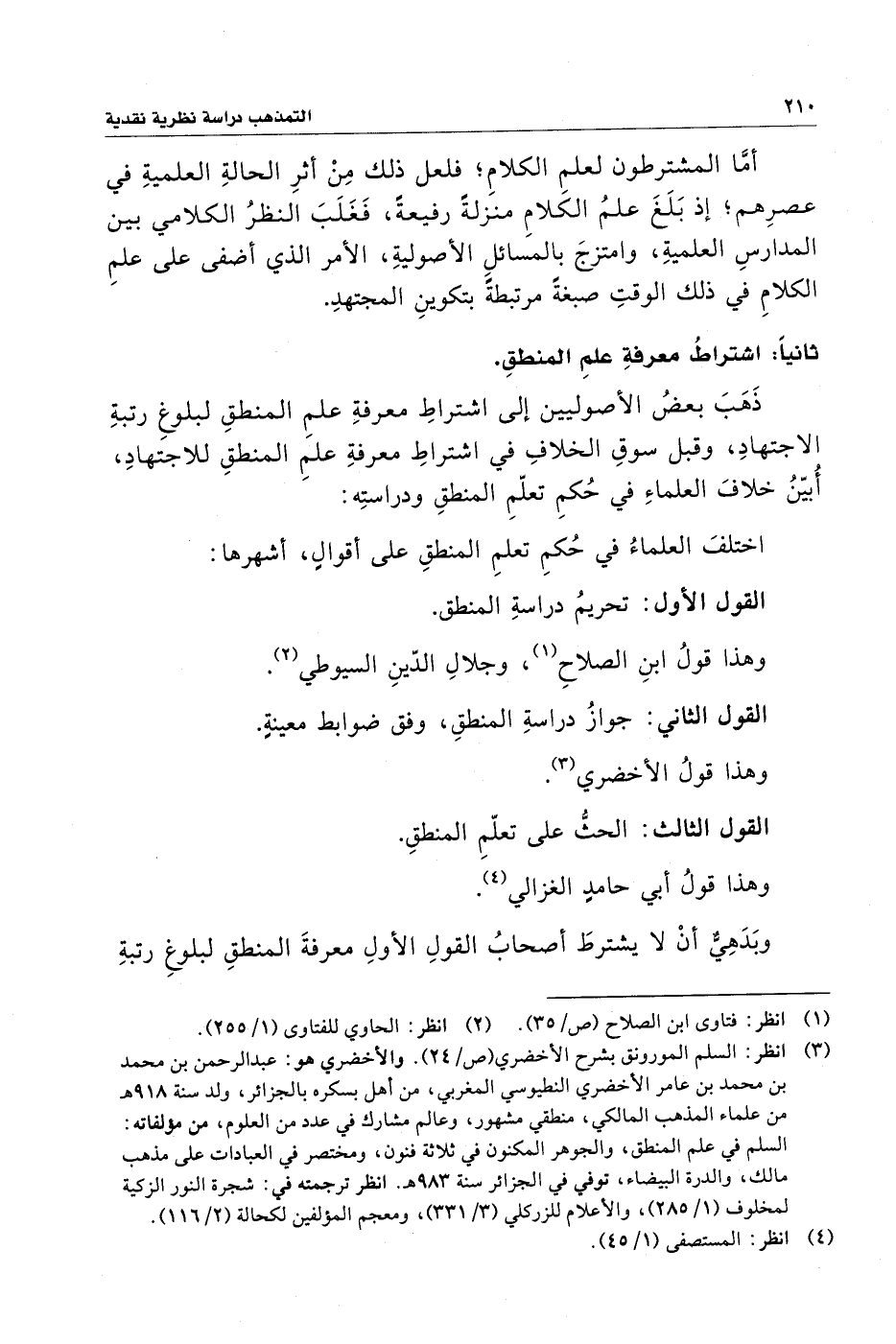 وبَدَهِيٌّ أنْ لا يشترطَ أصحابُ القولِ الأولِ معرفةَ المنطقِ لبلوغِ رتبةِ